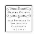 Esta tipografía clásica marca de dirección de retorno de nombre personalizado presenta un tipo serif con un espacio elegante con florecimiento caligráfico cursiva y un borde cuadrado con esquinas redondeadas. La impresión general es de sobriedad y claridad clásica intemporal.