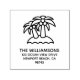 Seleccione cualquier color para este sello de goma con sus palmeras, su nombre y dirección en un tipo de letra simple y moderno.