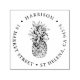 Añada un encanto sellado a mano a todos sus sendables con nuestro sello de dirección de retorno de piña vintage, con un ilustracion de piña grabado rodeado por su apellido y dirección de retorno.