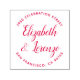 Personalice fácilmente estos sellos de goma con tinta de Boda redondeada personalizado con su propio nombre y dirección. Para personalizar de estos sellos de caucho, haga clic en "Personalizar esta plantilla" y cambie el texto en los cuadros proporcionados. Disponible en 9 colores diferentes y 6 tamaños. Por favor, vea su diseño en el monitor tan cerca del tamaño real como sea posible para asegurarse de que el texto se imprime al tamaño esperado. Para usar como marca de dirección de retorno, la mayoría de las personas necesitarán un tamaño mayor que este. Estos sellos de goma con tinta propia sellan hasta 10000 impresiones con cada cartucho, tienen un toque suave para un agarre seguro y dedos sin tinta y un proceso de fabricación respetuoso con el medio ambiente. No hay cantidad mínima de pedido.