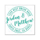 Sello de goma de la dirección de devolución de guión de la mano casada usando esta plantilla fácil de usar creada por sellos de goma para usted. Perfecto para cualquier pareja casada que desee agregar un toque personal a su correspondencia, con los nombres de la pareja en un elegante guión con letras a mano rodeado por la dirección de retorno con una letra moderna, este sello es perfecto para todas las ocasiones. Haga clic en el botón "personalizar esta plantilla" y agregue sus propios detalles a la plantilla, a continuación asegúrese de comprobar la amplia gama de colores de tinta y tamaños de sello que zazzle tiene que ofrecer.