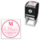 Personalice fácilmente estos sellos de goma con tinta de dirección de retorno de nombre de familia de monograma en círculo personalizado con sus propios nombres y dirección. Para personalizar de estos sellos de caucho, haga clic en "Personalizar esta plantilla" y cambie el texto en los cuadros proporcionados. Disponible en 9 colores diferentes y 6 tamaños. Por favor, vea su diseño en el monitor tan cerca del tamaño real como sea posible para asegurarse de que el texto se imprime al tamaño esperado. Estos sellos de goma con tinta propia sellan hasta 10000 impresiones con cada cartucho, tienen un toque suave para un agarre seguro y dedos sin tinta y un proceso de fabricación respetuoso con el medio ambiente. No hay cantidad mínima de pedido.