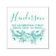 Personalice fácilmente estos sellos de goma con su propio nombre y dirección con el nombre y la dirección de retorno de la escritura de nombre de la corona botánica simple personalizado. Para personalizar de estos sellos de caucho, haga clic en "Personalizar esta plantilla" y cambie el texto en los cuadros proporcionados. Disponible en 9 colores diferentes y 6 tamaños. Por favor, vea su diseño en el monitor tan cerca del tamaño real como sea posible para asegurarse de que el texto se imprime al tamaño esperado. Estos sellos de goma con tinta propia sellan hasta 10000 impresiones con cada cartucho, tienen un toque suave para un agarre seguro y dedos sin tinta y un proceso de fabricación respetuoso con el medio ambiente. No hay cantidad mínima de pedido.