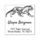 Sello de dirección para los amantes de los tigres. El diseño presenta un ilustracion vintage de un tigre en movimiento. El nombre personalizado se imprime en el medio en un guión cursivo claro mientras que la dirección se agrega en la parte inferior de una impresión agradable y fácil de leer.