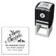 Sello de dirección de retorno diseñado por el personalizado que incluye reno Navidad, "Feliz Navidad" en escritura de estilo vintage, y nombre y dirección de la familia personalizado. Personalice hoy mismo esta marca de dirección con tinta para añadir un toque de estilo a sus tarjetas de felicitación de vacaciones, cartas, regalos y más!