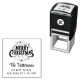 El sello de autograbado de la dirección de devolución personal de ferias navideñas incluye el texto "Feliz Navidad" con su nombre personalizado y dirección de retorno debajo en un elegante guión de caligrafía. Perfecto para tarjetas de Navidad, tarjetas de vacaciones, invitaciones para fiestas de Navidades y fiestas de vacaciones. Diseñado por ©Evco Studio www.zazzle.com/store/evcostudio