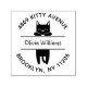 Corta marca personalizada de la dirección de retorno redondo para los amantes del gato. Decorada con un divertido ilustracion de gatito colgado detrás de un cartel de placa con nombre. Personalizar reemplazando el nombre y la dirección de ejemplo por un nombre personalizado e información de contacto. Sello de dirección y sello para sobres de regreso para cualquiera que sea dueño y ama de los gatos.