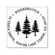 El sello de goma de la dirección de retorno de moda rústica de bosques muestra su nombre y dirección de retorno rodeando un trío de siluetas de pino.