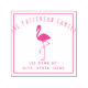 Sello de dirección con tinta propia que incluye un ilustracion de una silueta de flamingo.