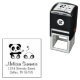 Un par de lindos pandas personalizados. El panda izquierdo sostiene un palo de bambú mirando al panda derecho que se ha quedado dormido.