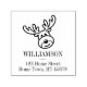 Un diseño de sello de tinta propia personalizado que presenta a Rudolph sobre su nombre y texto de dirección de regreso abajo. Ideal para agregar un toque extra de sello a mano a sus tarjetas de vacaciones.