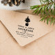 Personalice este sello de tinta propia con el nombre de la familia y la dirección de regreso en fuente moderna con arte de línea del árbol de Navidad.