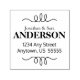 Esta estampilla de auto tinta muestra un acento giratorio lindo dibujado a mano por encima y debajo del texto personalizado.