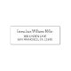 Elegante sello de goma con autotinta de la etiqueta de dirección de retorno con un guión moderno y limpio escrito a mano para el nombre personalizado y un sencillo y minimalista tipo de letra de todos los mayúsculas para la dirección. Ambos tipos de letra tienen líneas delgadas elegantes y elegantes.