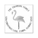 Este diseño cuenta con una dirección de retorno con un timbre de texto en círculo autoinnato con un pájaro natural de flamingo rosa tropical y un sencillo estilo de tipografía minimalista, ideal para una casa de playa en la isla costera de Florida, una elegante moda de moda diseño bonito diseño festivo, un divertido y caprichoso carácter animal, elegantes y únicos suministros de correo, un sello de sobres de papelería, una moda creativa, moderna y moderna y moderna, estupenda para la playa y atractiva