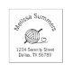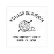 Una bola de hilo con un gancho de crocheting. El extremo suelto del hilo forma un corazón. Personalizar con su propia información.