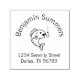 Un simple ilustracion de un pez mordiendo un anzuelo de pesca al final de una línea. Personalizar con su propia dirección.