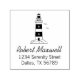 Ilustracion sencillo de un gran faro blanco y negro. Personalizar con su propio nombre y dirección.