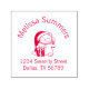 Un gato blanco sonriente en un gorra tradicional de Navidades con un gran regalo envuelto le desea a todos una feliz Navidad! En su pata izquierda el gato está sosteniendo una campana alta con una proa.