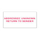 Dirección roja Desconocida Retorno a la marca de tinta del remitente. Ideal para paquetes y sobres. ¡Personalizable.
