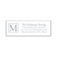 Se trata de un simple monograma enmarcado, nombre de familia y sello de autoedición de dirección. El color de la caja y el color de la tinta pueden cambiarse en la página del producto antes de añadirlos a su carrito.