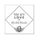 Fabricado Con Amor Personalizado Loto Flor Estampado Geométrico De Marco Autograbado... Una elegante estampilla de goma con tinta propia para tus regalos hechos a mano, comida casera o productos a la venta. Un marco de flores geométricas de loto con forma de diamante bordea el texto que dice "Hecho con amor por" seguido de tu nombre en tipografía de escritura a la moda. Puede cambiar fácilmente el nombre por el suyo propio en la plantilla de personalización.