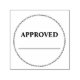 Facilite la consulta cuando se haya aprobado una propuesta, aplicación o documento con este diseño de líneas finas formando un marco circular alrededor de la palabra aprobada que tiene una línea debajo de ella para la fecha y/o su firma.