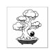 Sencillo ilustracion blanco y negro de un árbol bonsai retorcido japonés en una bandeja superficial. Un pequeño ninja está mirando el árbol. Bonsai es una forma de arte japonesa que utiliza árboles cultivados en contenedores.