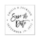 Termina tu guardar los sobres de fecha, las postales y las golosinas de bricolaje con este sello de goma de moda con tus nombres y fecha boda rodeando "guardar la fecha" en tipografía de pincel con letras a mano.