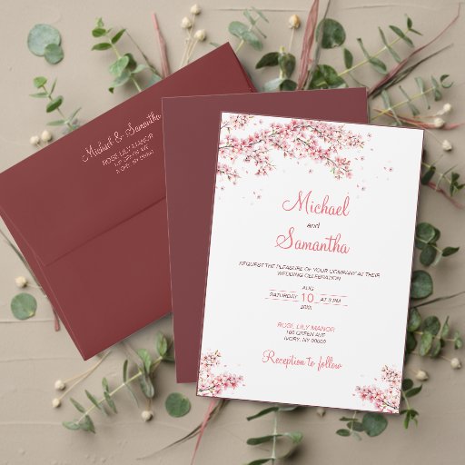 Nuestra elegante colección de Bodas Cherry Blossom es el epítome de la belleza clásica, ideal para aquellos que buscan un diseño tradicional e intemporal para su día especial. Con delicadas flores de cerezo acuático, esta colección exuda elegancia y elegancia. Los detalles de las flores, combinados con un toque de pétalos de color burdeos y rosa exuberante, crean un ambiente verdaderamente impresionante y romántico. Para completar su papelería de boda, asegúrese de explorar nuestra suite boda coincidente, que incluye invitaciones, tarjetas RSVP, menú, detalles, etiquetas favores, pegatinas y tarjetas de agradecimiento. Con esta colección cohesiva, se puede crear una temática muy bien coordinada que deja una impresión duradera a los clientes.