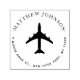 Este elegante sello de dirección de devolución de nombre personalizado redondeado de avión es perfecto para cualquier viajante frecuente o piloto! Se ajustará a su nombre y apellido, o a su apellido y a su dirección completa. El diseño presenta una silueta de avión y texto personalizado en una tipografía elegante de funda inferior y superior.