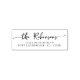 Sello de tinta para dirección de devolución de invitación de boda con elegante caligrafía minimalista moderna y letras a mano. Estos sellos de dirección de apellido de familia que presentan su apellido en una tipografía de fuente de cola de florituras de estilo manuscrito bonito y información de dirección de devolución, fáciles de personalizar. Ahorre tiempo y agregue estilo a sus fechas de guardado de boda, ducha de novia, ducha de bebé, fiesta de cumpleaños, RSVP, inauguración de casa, anuncios de graduación, tarjeta de Navidad y sello de etiqueta de dirección de devolución para invitación. Incluso hacen grandes regalos de Navidad para familiares y amigos, regalos de inauguración de casa lindos o regalo de boda para una nueva pareja.
