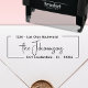 Sello de tinta para dirección de regreso de boda con tipografía minimalista moderna elegante y letra a mano. Estos sencillos sellos de dirección con el nombre de familia que presentan su apellido en una bonita fuente de estilo caligrafía manuscrita y la información de la dirección de retorno, fáciles de personalizar. Ahorre tiempo y agregue estilo a sus anuncios de Boda, Despedida de soltera, Fiesta de cumpleaños, RSVP, Baby Shower, Inauguración de casa, Anuncios de graduación, Tarjeta de Navidad y etiqueta de dirección de retorno para Invitación. Incluso hacen grandes regalos de Navidad para familiares y amigos, bonitos regalos de inauguración de casa o regalo de boda para una nueva pareja.