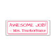 Este inspirador diseño de sellos de caucho incluye el motivador mensaje de retroalimentación "AWESOME JOB!" y el nombre personalizado del profesor, educador o tutor. Podría ser utilizado por un profesor, educador o tutor al marcar las asignaciones, para indicar que un estudiante ha tenido un buen desempeño.
