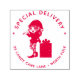 Los Navidades divertidos festejan el sello de goma con tinta roja- (opción para elegir diferentes colores de tinta). Lee 'Entrega especial' en letras curvadas en la parte superior. En la parte inferior se lee '25 Candy Cane Lane North Pole', también en letras curvadas y simples. Centered es una mujer Navidad elfo del Polo Norte, vestida de gorra elfo y medias, apoyada en un jumbo envuelto, regalo de Navidad. Perfecto timbre de Navidades lindos para agregar un toque final a todos esos regalos de Navidades antes de que sean enviados por correo. ¡Imaginen la expresión en las caras de los niños cuando ven que su paquete de Navidades fue entregado desde el Polo Norte!