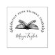 Sello de goma de verde con nombre de caligrafía de letra circular moderna y libro.
