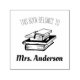 Esta estampilla de auto-tinta está diseñada para que cualquier profesor etiquetar sus libros de clase personales. Ofrece un gráfico lindo de una pila de libros y texto personalizado que permite personalizar con el nombre del profesor.