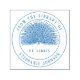 Este sello único de la biblioteca vintage presenta un marco doble redondo y la imagen de un pavo real con plumas abiertas en el centro. Bajo el pavo real se lee "ex libris". El mensaje "Desde la biblioteca de" se mueve elegantemente dentro del marco en la parte superior y el nombre completo está en la parte inferior. Ambos están escritos en una tipografía elegante. Puede personalizar fácilmente este diseño cambiando el nombre por el suyo. Sólo tienes que pulsar el botón "Personalizar esta plantilla" y estás configurado.