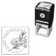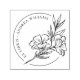 Sello de tinta propia Ex libris floral botánico con flores dibujadas a mano con elementos botánicos, su nombre en una tipografía redonda a la izquierda con un borde circular delgado.