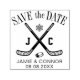 Familia de fanáticos del hockey sobre hielo o sello de fecha de boda Save the Date con tinta propia Nombre personalizado y fecha Iniciales