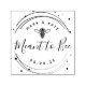 Sello personalizado para regalos de boda con diseño de líneas elegantes y puntos circulares "Meant to Bee". Personalice este sello con los nombres de la pareja y la fecha de la boda. Utilice el sello en etiquetas, adhesivos y tags para regalos de boda únicos con frascos de miel.