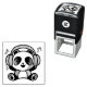 Sello Automático Feliz Panda con auriculares escuchando música.