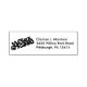This self inking return address stamp has the silhouette of the text Merry Christmas in festive fancy letters accented with stars. Customise your address with the template.