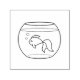 Ilustracion blanco y negro de un pez dorado nadando en una pecera vacía de decoraciones.