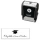 Esta estampilla de autotinta presenta una gráfica de un mortarboard (gorra de graduación) y texto de escritura personalizado para el nombre del graduado.