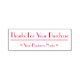 Este sello de goma incluye el agradecido mensaje "Gracias por tu compra" y un nombre personalizado de empresa/organización. Puede ser utilizado por una empresa, un profesional, una organización o una empresa para dar gracias a clientes o clientes.