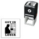 ¡Un regalo político gracioso contra Trump que se autoinclina sello de goma para todos los que están a favor de la democracia! Un regalo divertido para los estadounidenses amantes de la democracia que NO votarán por el criminal. Gráfica de sello de un portly y corrupto Donald J Trump yendo a prisión por todos sus crímenes. "Métete perdedor". ¡Trump en prisión! Él está en la lista.