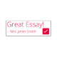 Este inspirador diseño de sellos de goma incluye el mensaje "¡Gran Ensayo!" y el nombre de un profesor personalizado. También cuenta con una marca de verificación decorativa. Podría ser utilizado por un profesor o educador al calificar el trabajo estudiantil, para reconocer que un estudiante ha hecho un trabajo excepcional.