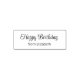 Feliz cumpleaños es un guión elegante en este sello. También hay texto que no es de script para tu nombre. Todo el texto se puede editar o eliminar.