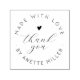 Este elegante sello de agradecimiento es perfecto para una pequeña persona de negocios y artesanía. Presenta un mensaje de "gracias" en un guión moderno de caligrafía con un pequeño corazón por encima. El texto "hecho con amor" y su nombre personalizado en una tipografía delicada y moderna, se curva con gracia.